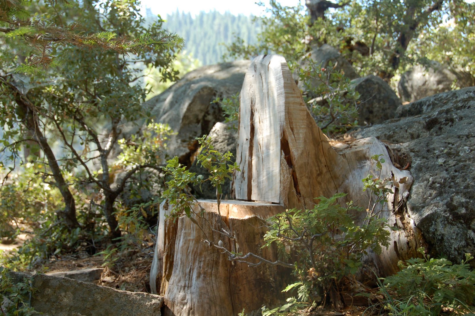 We just got back from a week at Pinecrest Lake. Natural gardens are truly amazing because they are taken care of by Mother Nature. Her sun and her water. We take 5 mile walks around the lake during the week. This was a beautiful surprise. One of those bonus visuals I've been talking about. Someone carved a chair into this old tree stump. It was irresistible.